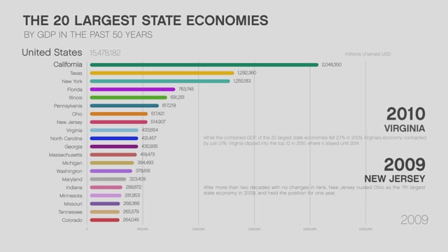 Animation The 20 Largest State Economies By Gdp In The Last 50 Years